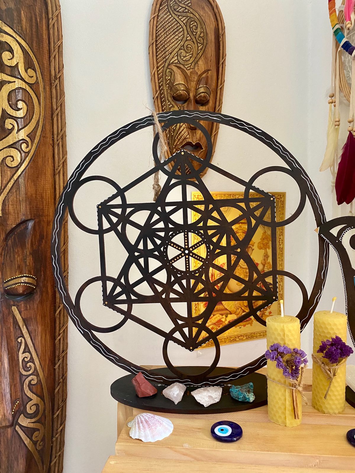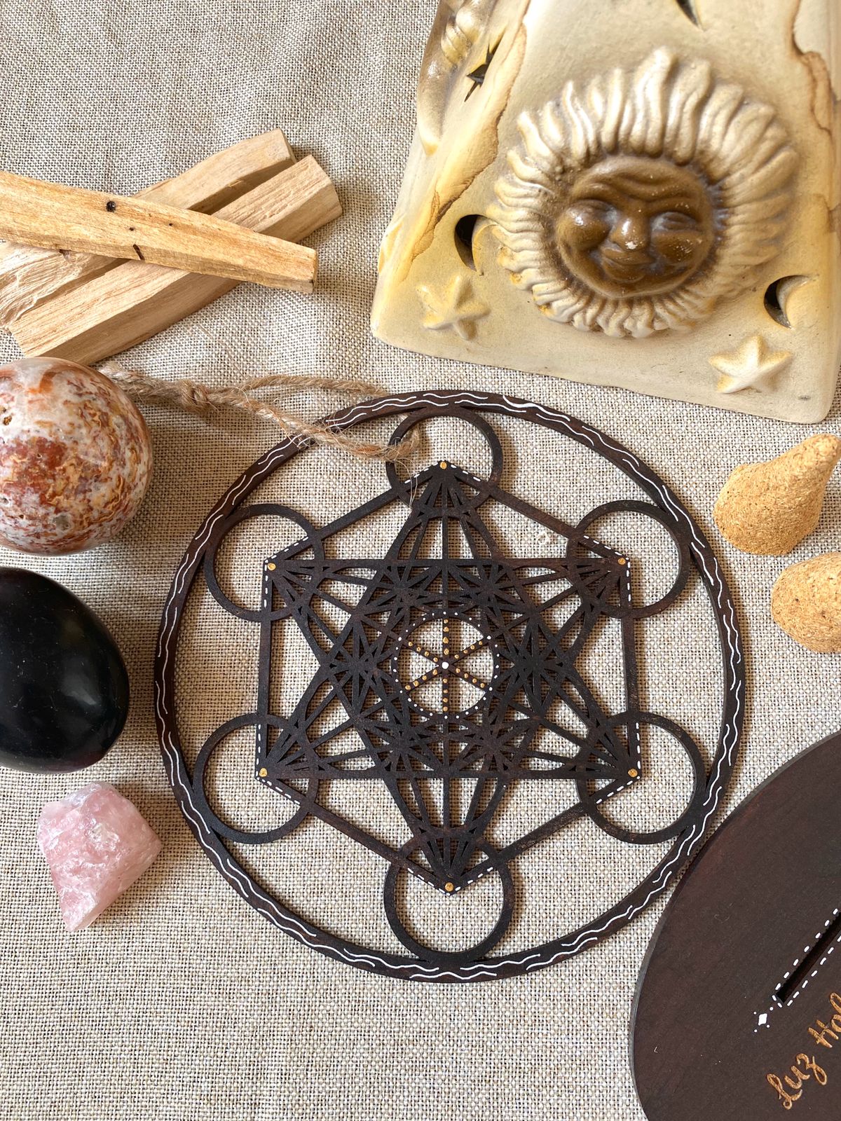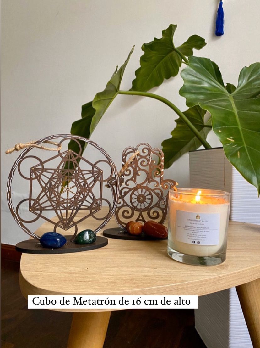 También podemos usar nuestra geometría sagrada como parte de nuestra meditación, yoga ó para estudiar o trabajar para que nuestras intenciones durante ello, puedan girar entorno a una mejor atmosfera. Te recomendamos nuestras velas ecológicas con aromas increíbles, puedes adquirirlas y leer sus beneficios dando click aquí: https://luzholisticaysalud.com/collections/amuletos❁ Incluye: 1 Metatrón + parante